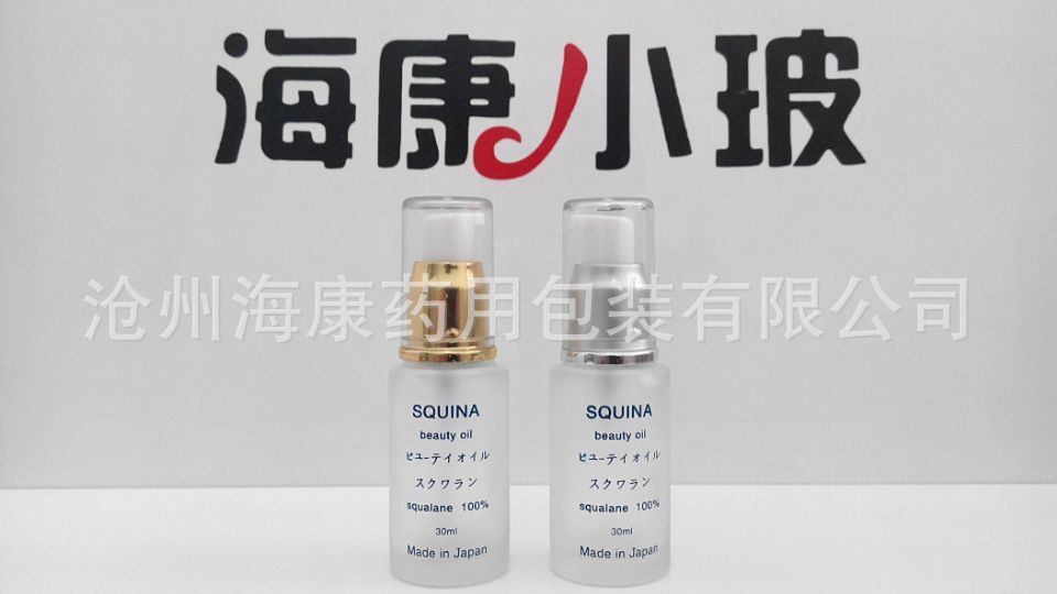 此款玻璃瓶可根據客戶需要定制,可采用低硼硅和中性硼硅玻璃管材,瓶口螺紋外徑,瓶身蒙砂后絲印。此玻璃瓶可用于精華素,乳液的盛裝,可配用擰蓋,滴管,泵頭等。
